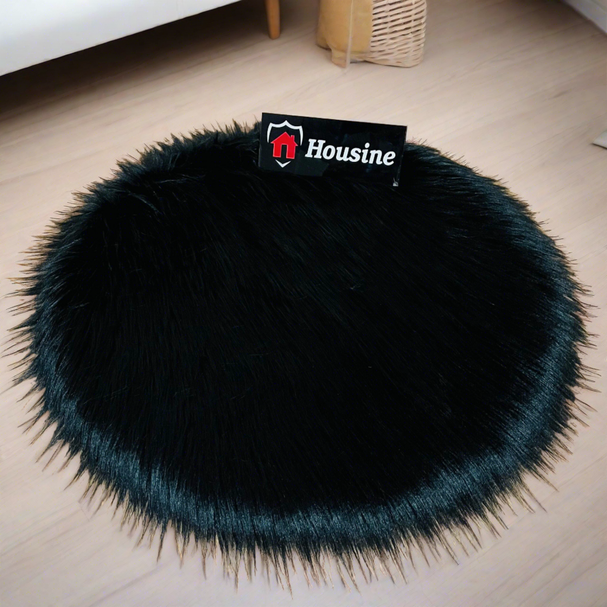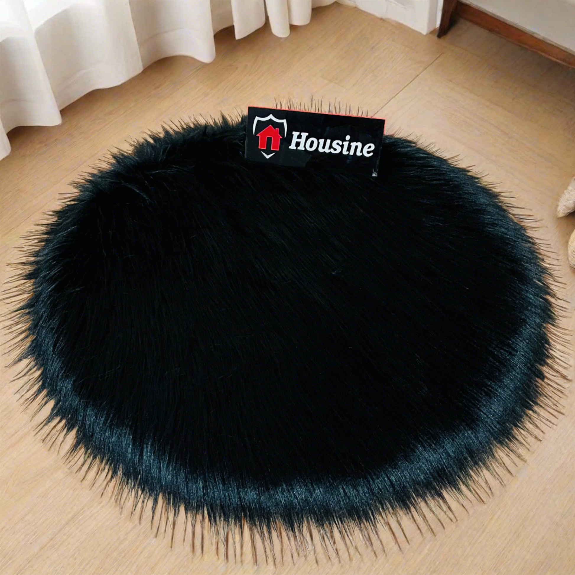 Black Round Faux Fur Rug, Luxury Fluffy Mat -(80×80) cm