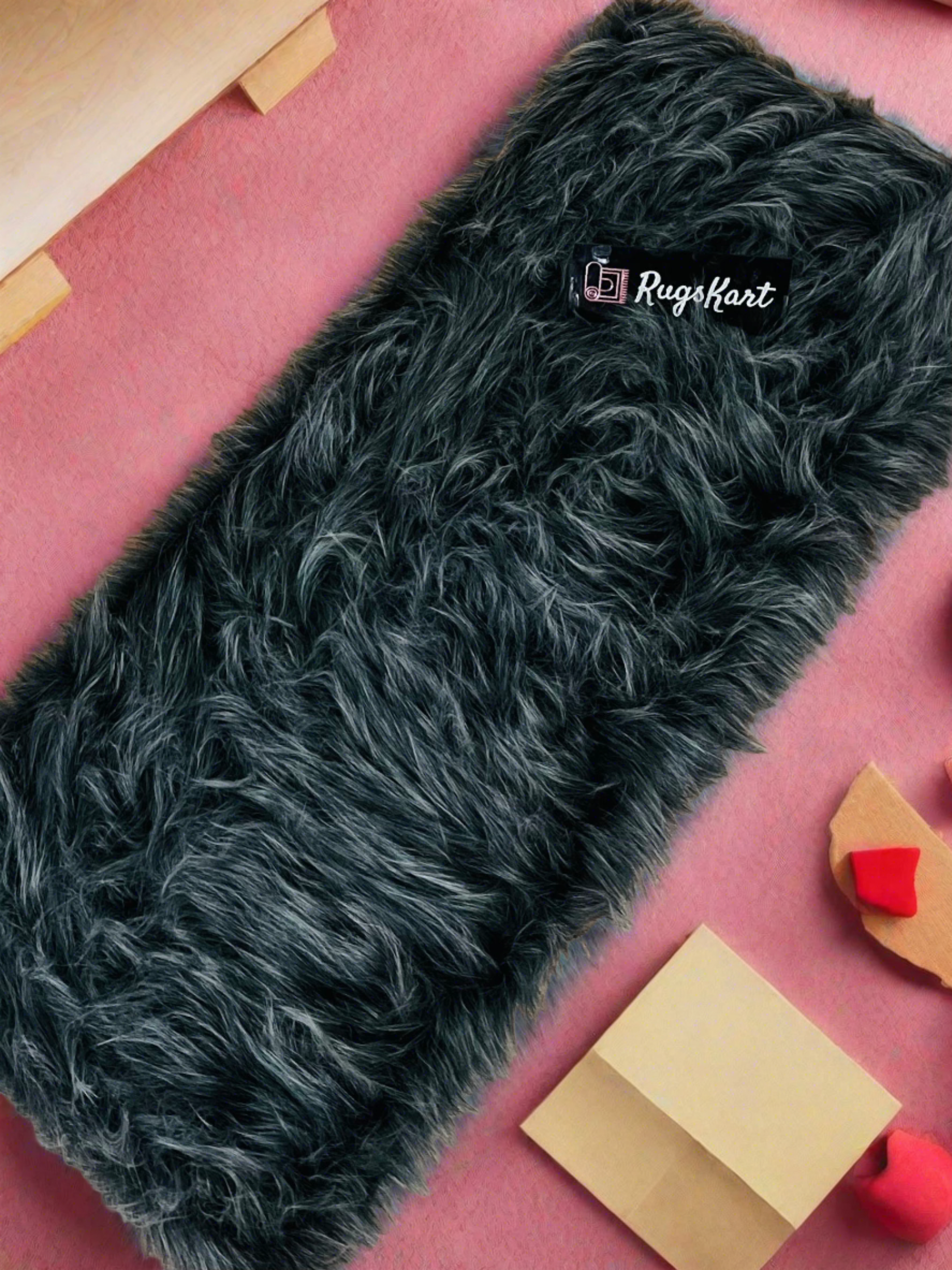 Gray Faux Fur Bedside Runner, Luxury Fluffy Mat – 60×150 cm