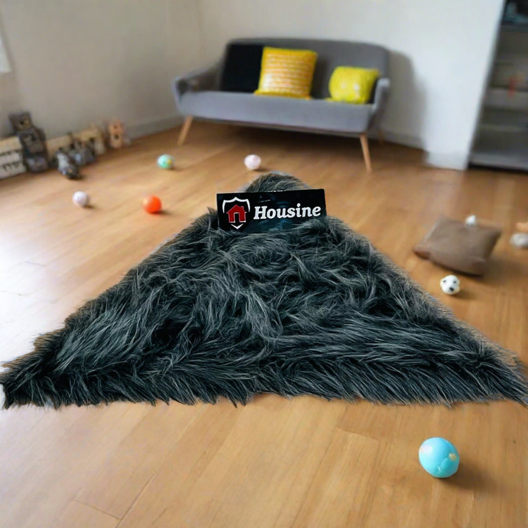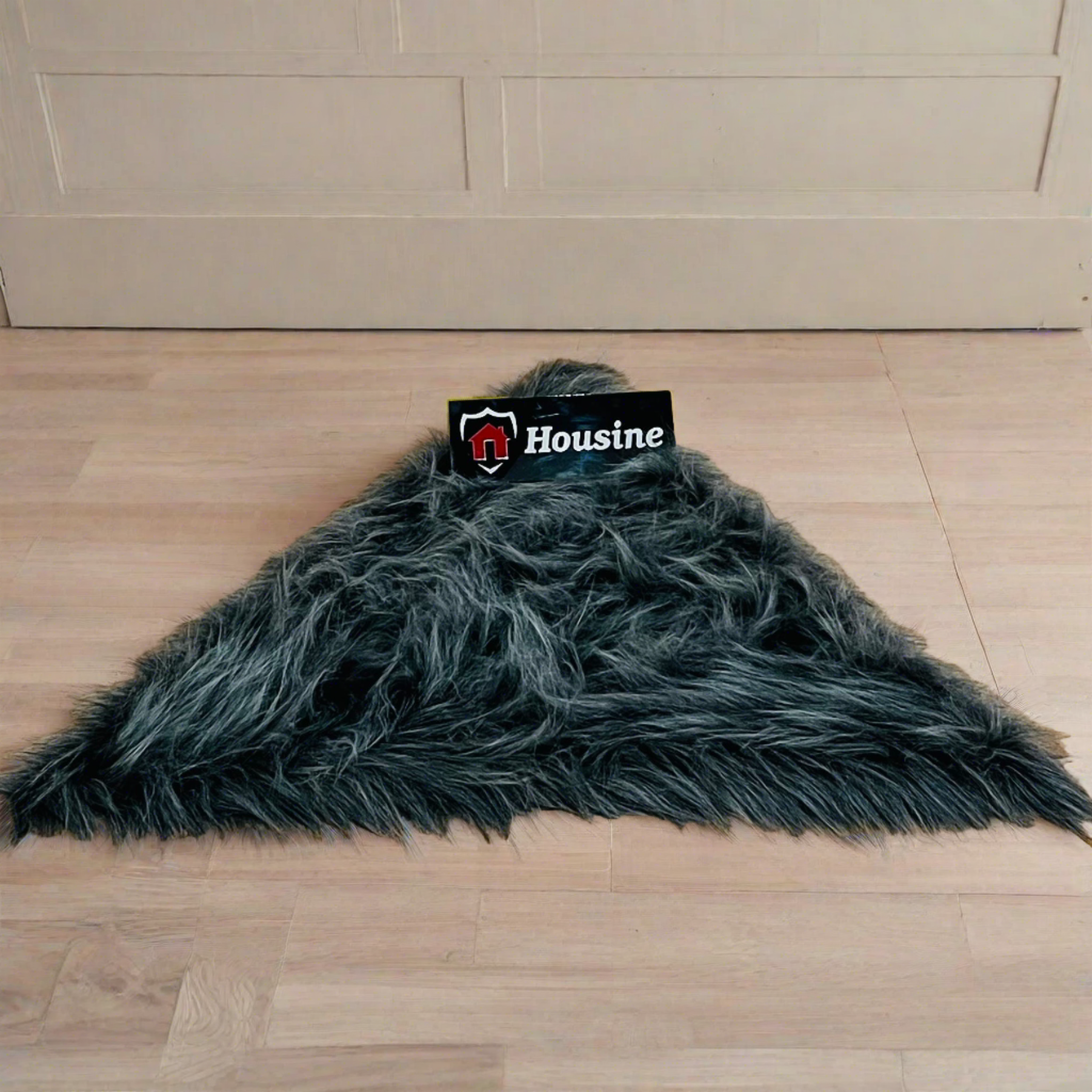 Gray multi Triangle Faux Fur Rug, Luxury Fluffy Mat -(90×90) cm