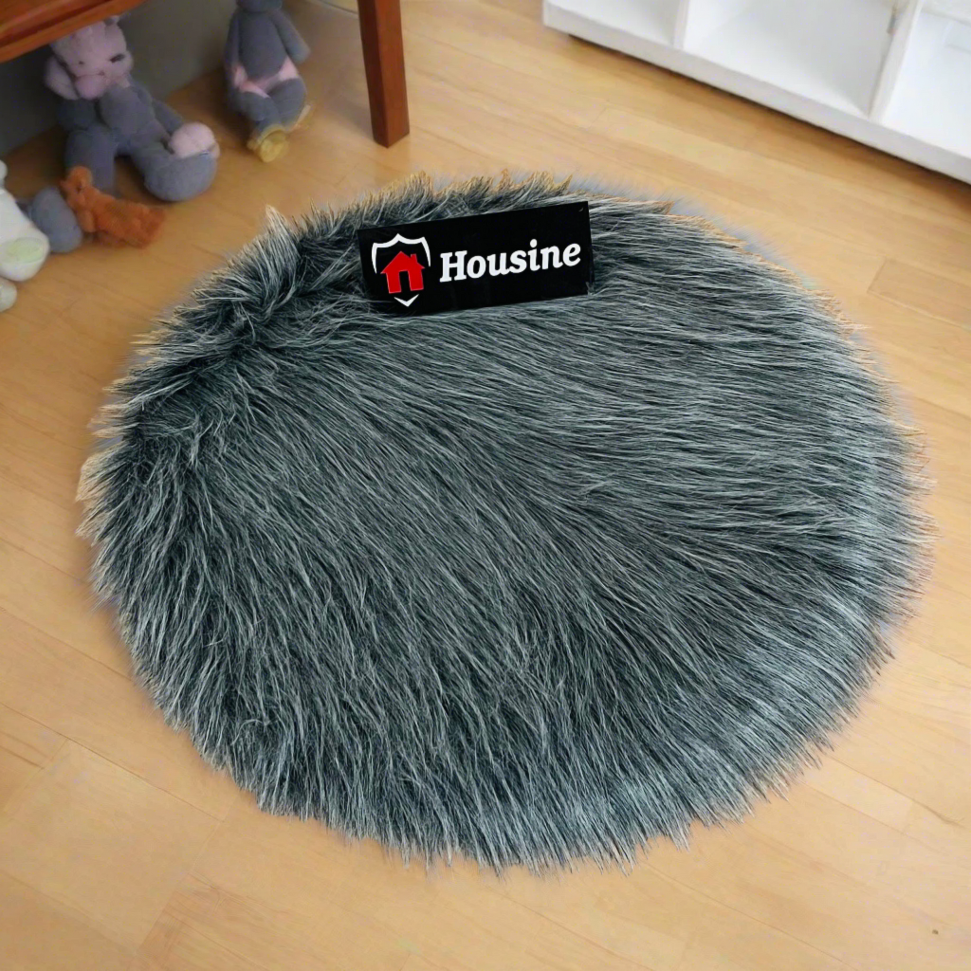 Grey Round Faux Fur Rug, Luxury Fluffy Mat -(80×80) cm