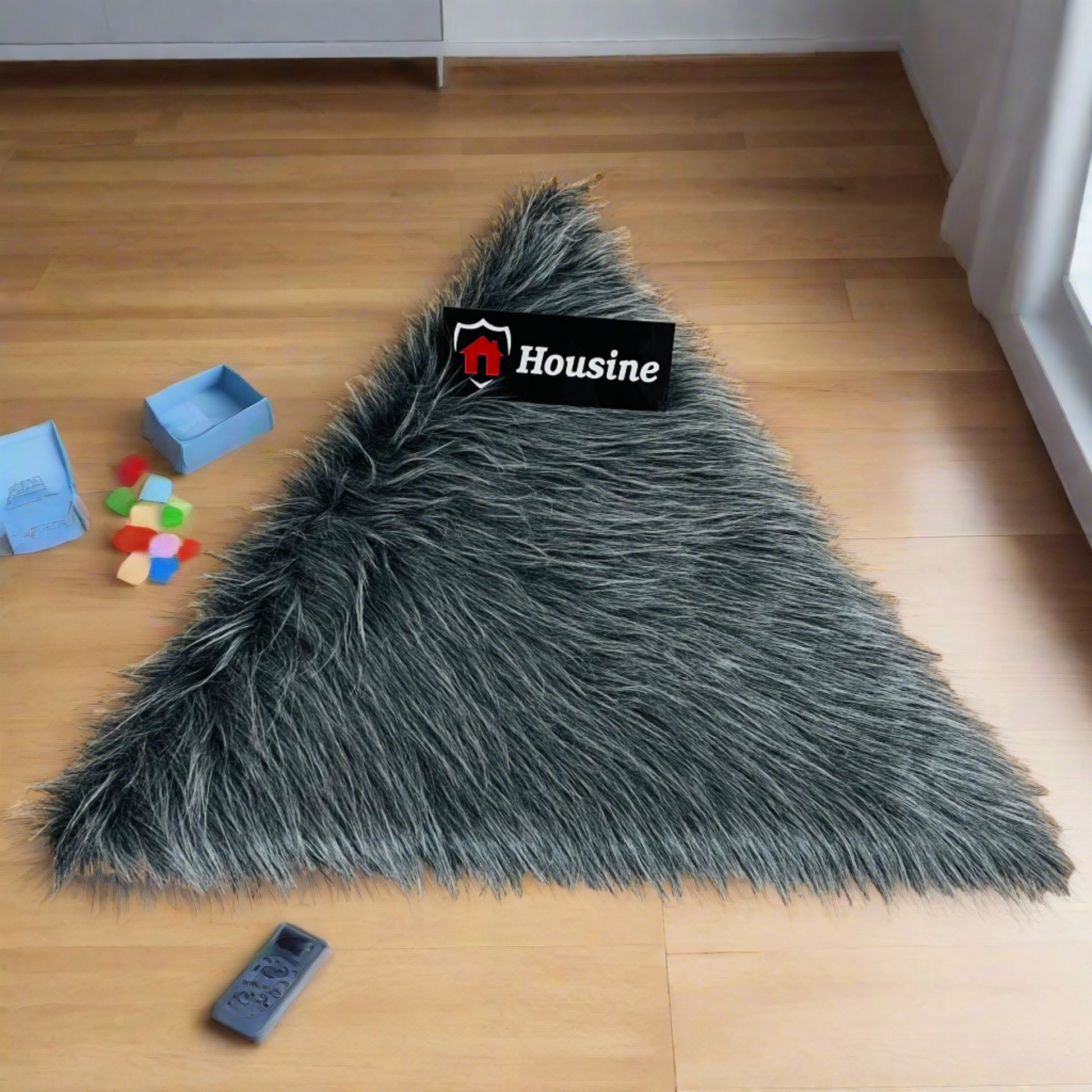 Gray Triangle Faux Fur Rug, Luxury Fluffy Mat -(90×90) cm