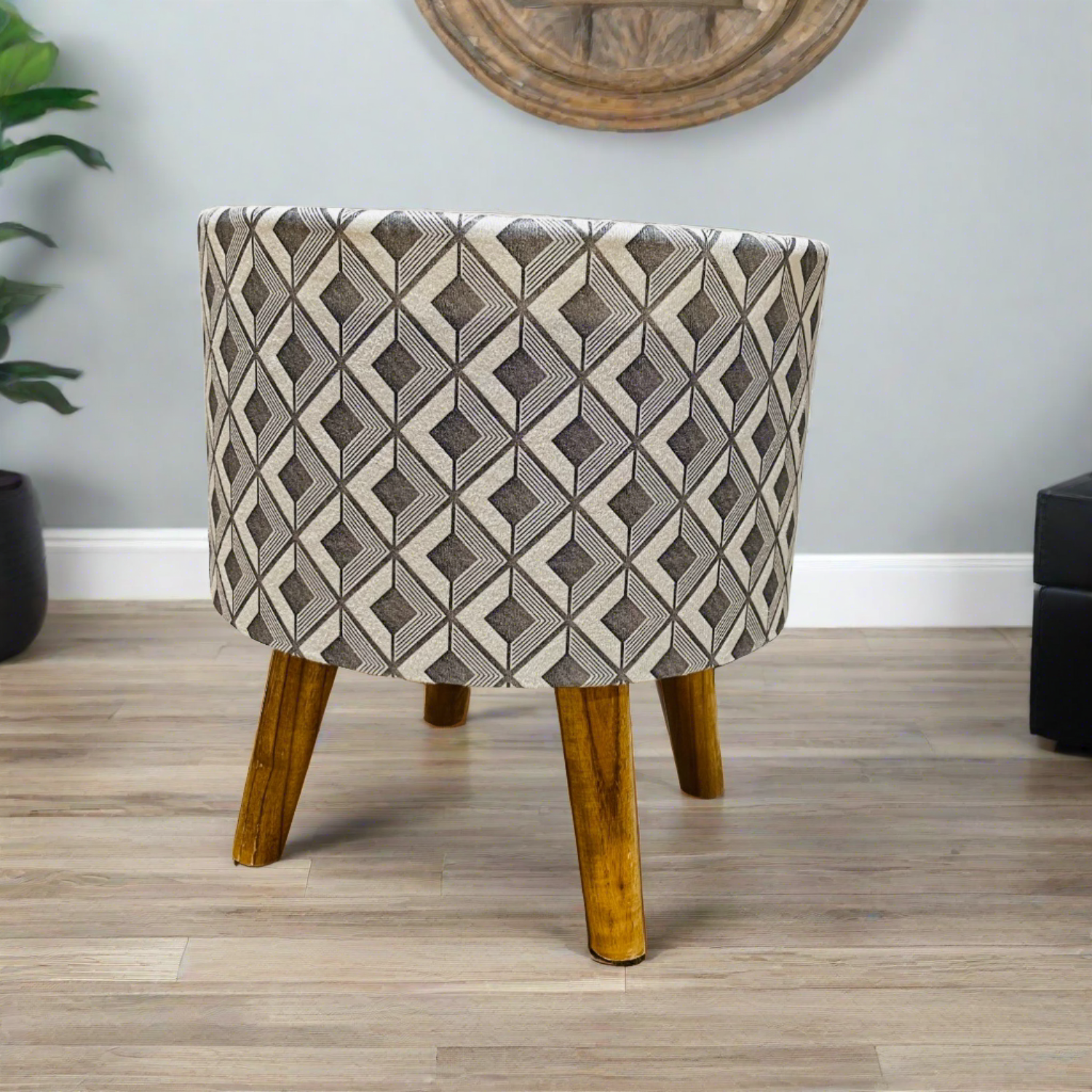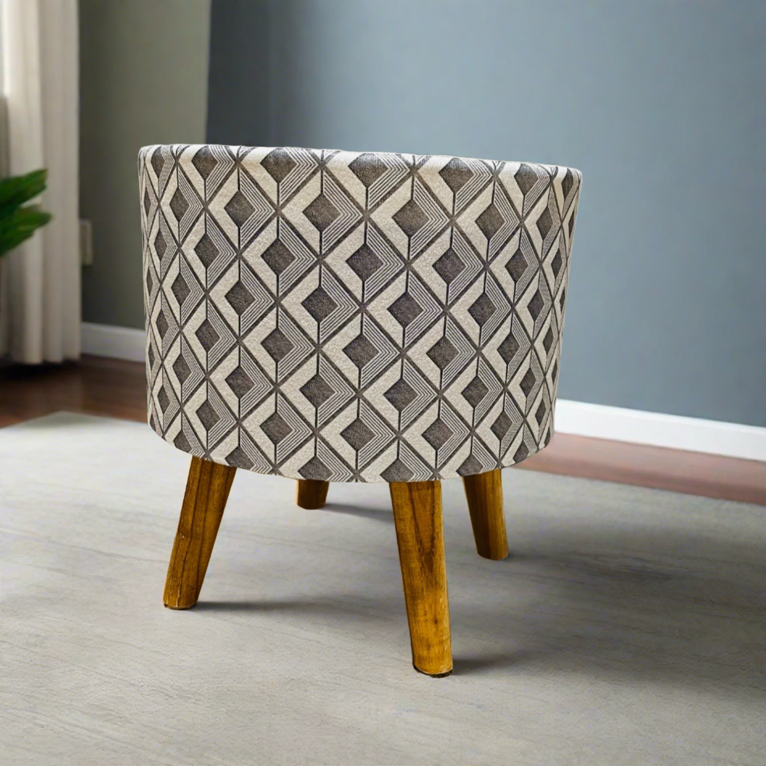 - 4 Wooden Legs Natural Finish Contemporary Designed Exclusive Micro Velvet Printed Stool/Ottoman.