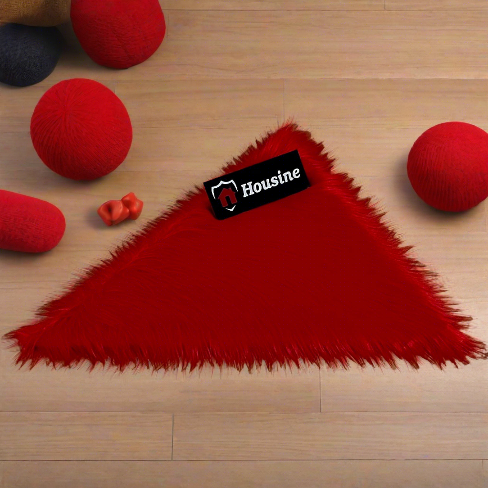 Red Triangle Faux Fur Rug, Luxury Fluffy Mat -(90×90) cm