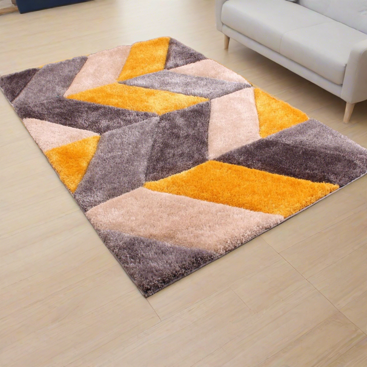 Yellow & Gray 3D Wave Cut Shaggy Rug